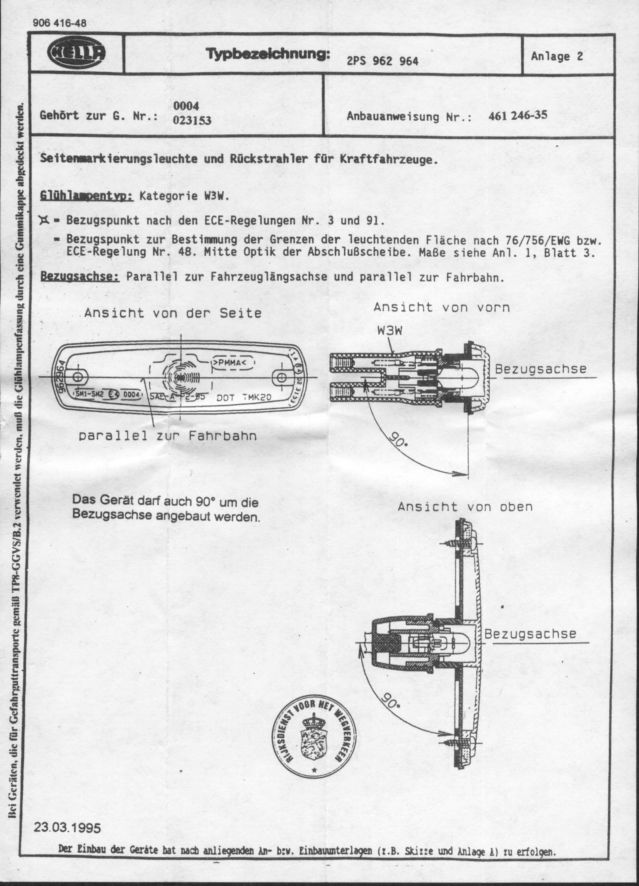 | Hella 962964 Typ 2PS 962 964 - 031 Maße ca 126 x 39 mm Glühbirne 12V 3W Stecksockel W3W Anbauanweisung_Hella |