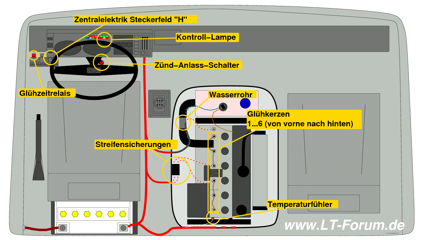 Übersicht der Spannungsversorgung der Vorglühanlage insgesamt